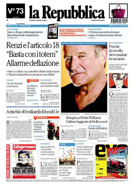 La Repubblica: “Renzi e l’articolo 18: basta con i totem”.