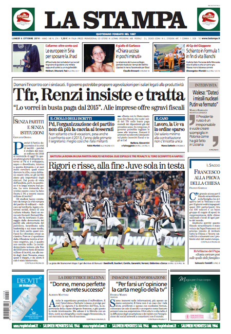 La Stampa: “Tfr, Renzi insiste e tratta”.