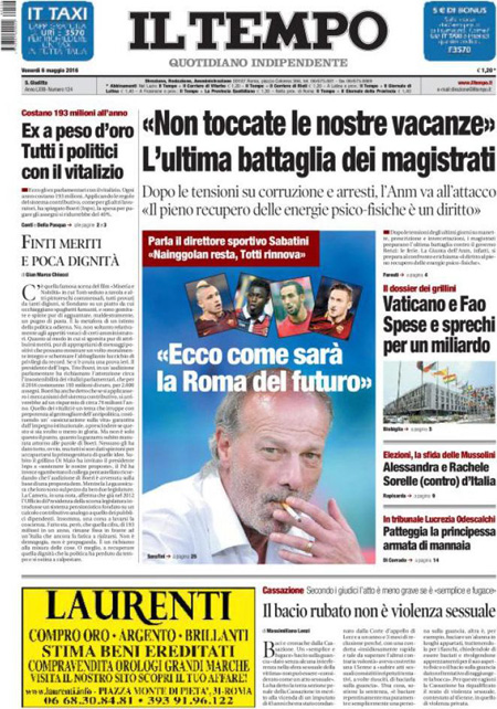 La prima pagina del Sole 24 Ore: “Visco: la Bce non spinge per la vendita degli Npl”. La prima pagina del Messaggero: “Migranti, Merkel dice sรฌ a Renzi”. La prima pagina del Giornale: “Tasse, il trucco di Renzi”.ย Queste le prime pagine dei giornali di venerdรฌ 6 maggio.