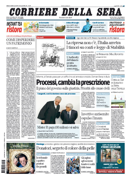 Il Corriere della Sera: “Processi, cambia la prescrizione”. Come disperdere un patrimonio, editoriale di Aldo Cazzullo: