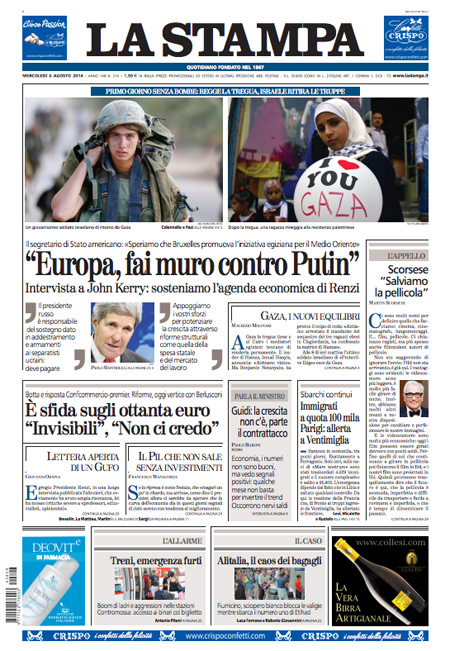 La Stampa: “Kerry: Europa, fai muro contro Putin”.