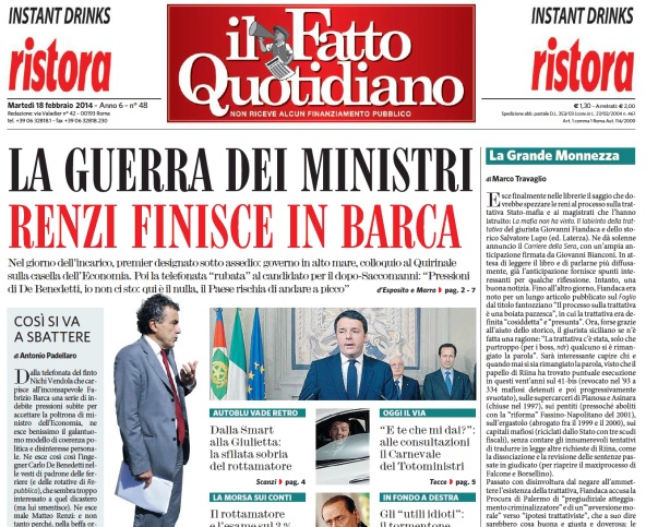 Il Fatto Quotidiano: “La guerra dei ministeri. Renzi finisce in Barca”.