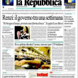 La prima pagina di Repubblica: “Renzi: il governo tra una settimana”.