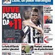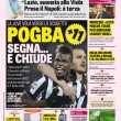 I giornali sportivi invece aprono con Paul Pogba, centrocampista francese che ieri ha permesso alla Juventus prima in classifica di allungare a 11 punti il vantaggio sulla Roma, e quindi rendere praticamente certa la vittoria dello Scudetto per la sua squadra.