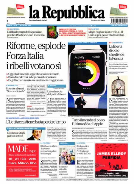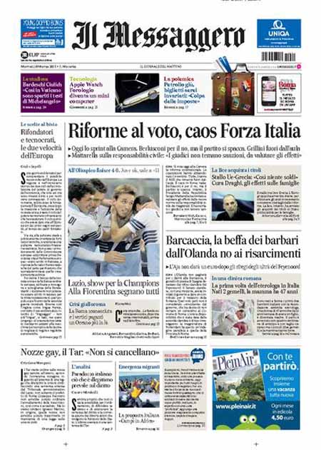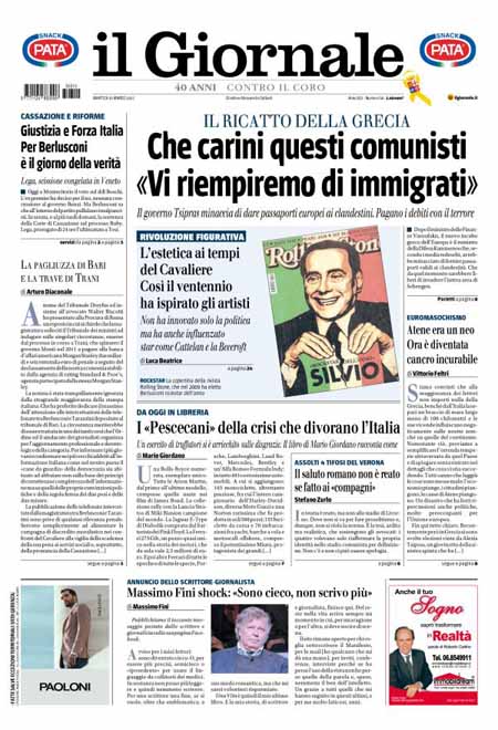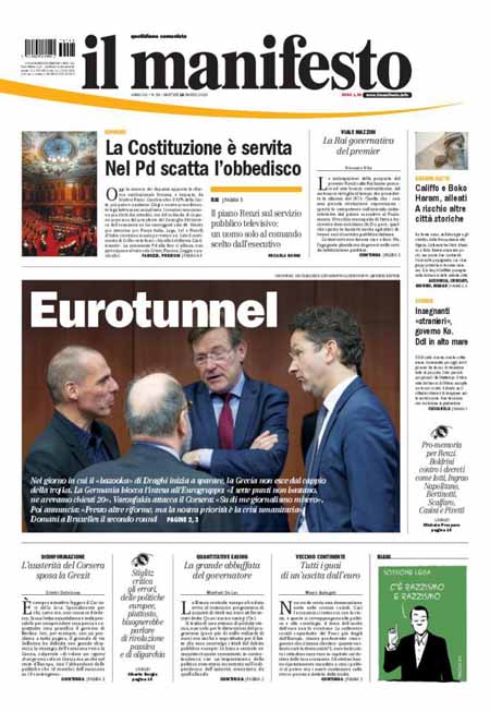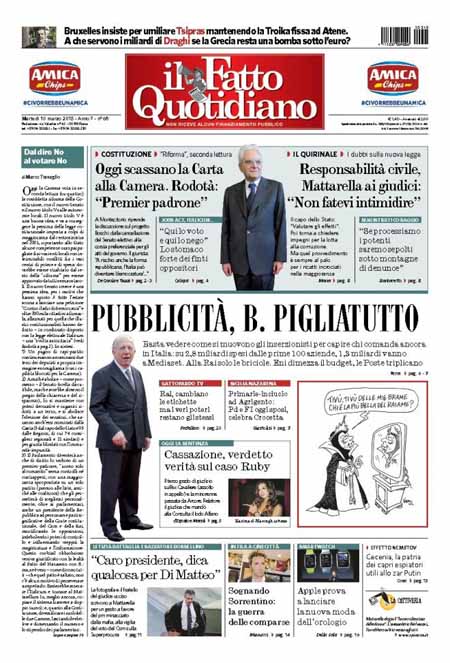 ROMA – Sono due le principali notizie di cui si occupano i giornali di oggi, 10 marzo: la situazione dentro Forza Italia in vista del voto della Camera previsto per oggi riguardo la riforma costituzionale e le nuove trattative tra la Grecia e l’Eurogruppo per l’estensione del programma di aiuti internazionali per altri quattro mesi.