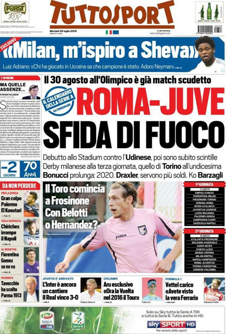 Infine, sulle prime pagine di oggi, si parla del prossimo calendario della Serie A: deciso ieri sera con un sorteggio e che prevede diverse partite interessanti già nelle prime giornate di campionato.