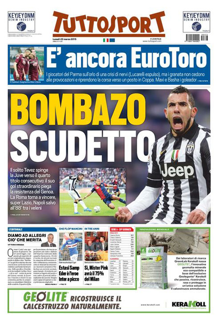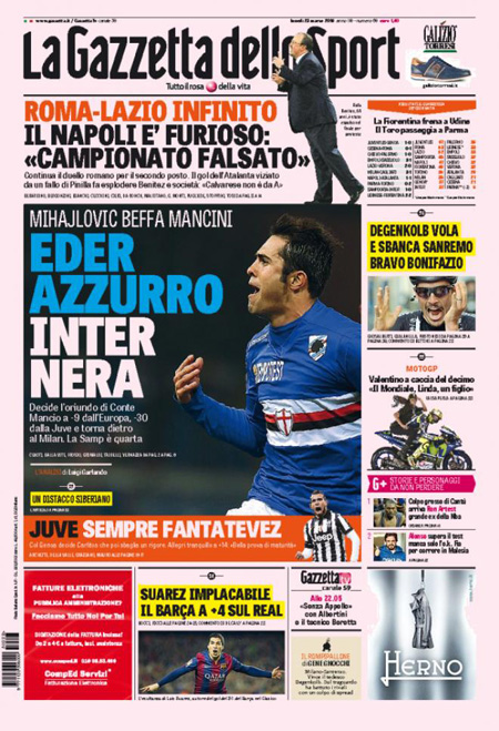 I giornali sportivi si occupano dei risultati della giornata calcistica, con le vittorie di Juventus, Roma, Lazio e Sampdoria in testa alla classifica.