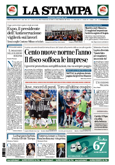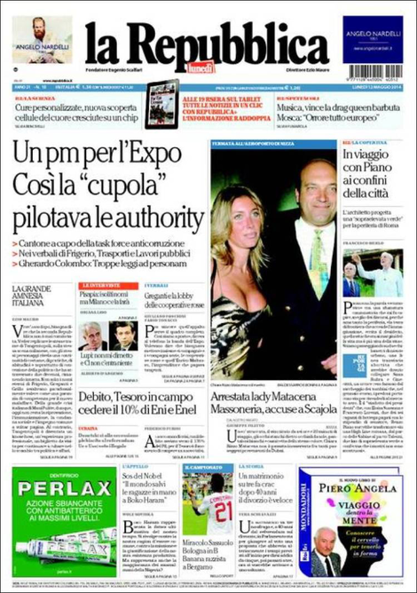 ROMA – I quotidiani di oggi, lunedì 12 maggio, danno molto spazio gli strascichi delle due grandi storie venute fuori venerdì: gli arresti dell’ex ministro Claudio Scajola e quelli legati agli appalti per l’organizzazione di Expo 2015, l’esposizione universale che si terrà l’anno prossimo a Milano.