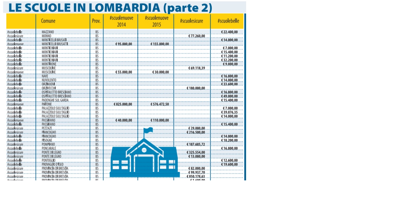 Queste le scuole della Lombardia: