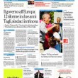 ROMA – Le prime pagine dei giornali di oggi, 7 aprile, dopo un giorno di pausa, aprono con varie notizie: il Corriere della Sera apre con un’intervista al ministro Paolo Gentiloni, Repubblica e la Stampa con titoli sulla politica economica del governo. Si parla molto anche delle violenze dell’Isis in Siria, mentre i giornali sportivi sono concentrati sulla semifinale di Coppa Italia tra Juventus e Fiorentina che si giocherà stasera.