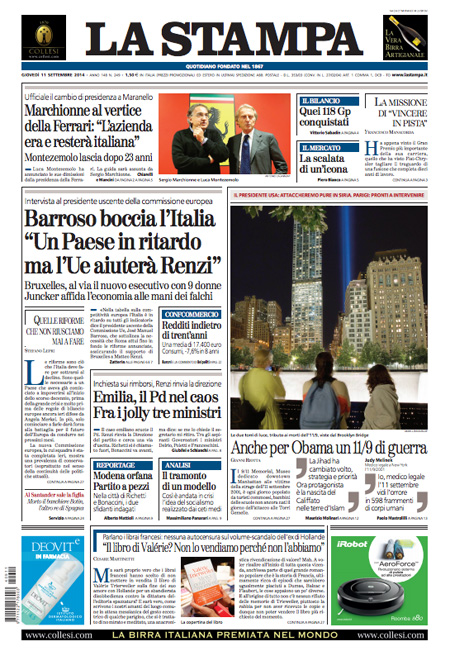 La Stampa: “Barroso boccia l’Italia: Un paese in ritardo”.