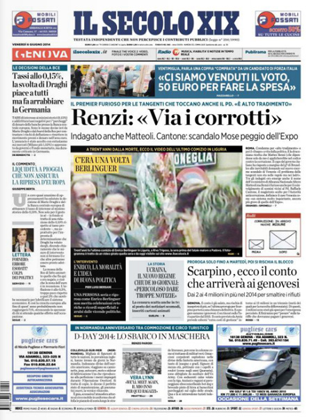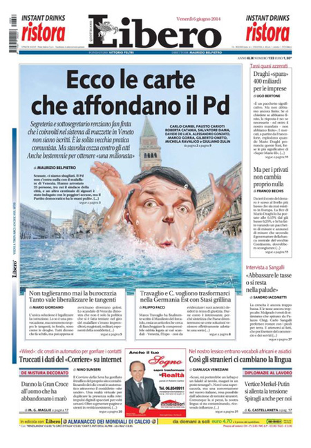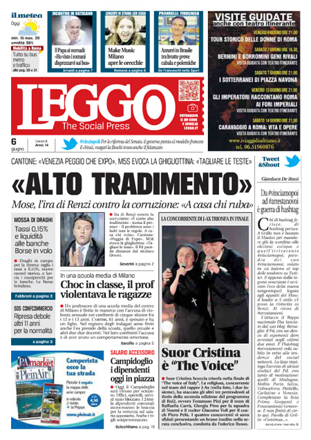 L’altra sono le parole di Matteo Renzi, che rispondendo a una domanda sugli arresti per tangenti a Venezia nella conferenza stampa in chiusura del G7 a Bruxelles ha accusato di alto tradimento i politici colpevoli di corruzione.