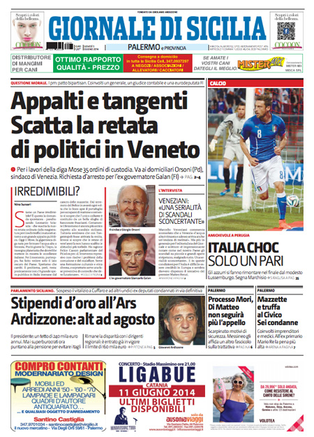 Gli arresti riguardano sia esponenti di centrosinistra, come il sindaco di Venezia Orsoni, che di centrodestra, come un assessore regionale e il deputato e ex-ministro Galan, e le parole usate dai giornali per descrivere l’operazione sono “retata”, “terremoto”, “tsunami” e “tangentopoli”.