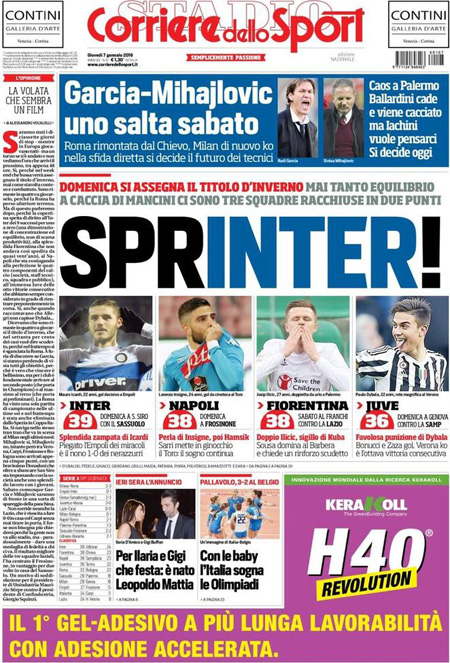 I quotidiani sportivi titolano sui risultati della giornata di campionato, con la vittoria delle prime quattro squadre in classifica che lascia la situazione inalterata.