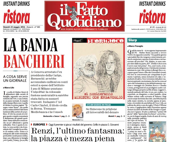 Il Fatto Quotidiano: “La banda banchieri”.