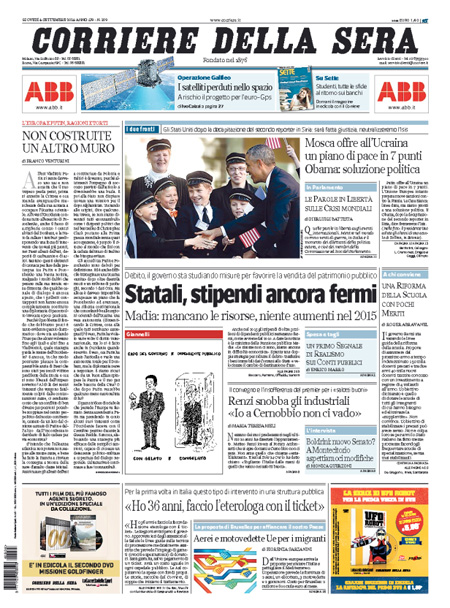 Il Corriere della Sera: “Statali, stipendi ancora fermi”. Non costruite un altro muro, editoriale di Franco Venturini: