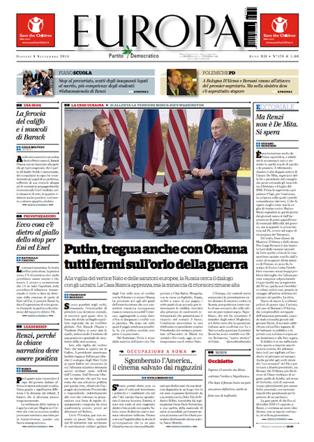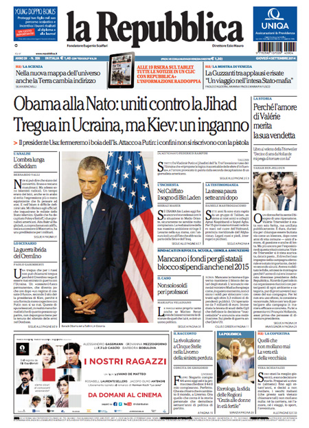 La Repubblica: “Obama alla Nato: uniti contro la Jihad. Tregua in Ucraina, ma Kiev: un inganno”.