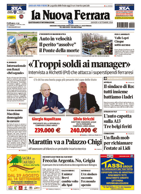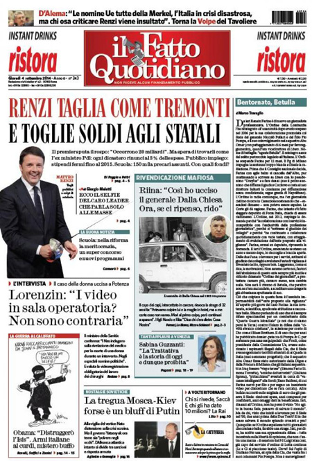 Il Fatto Quotidiano: “Renzi taglia come Tremonti. E toglie soldi agli statali”.