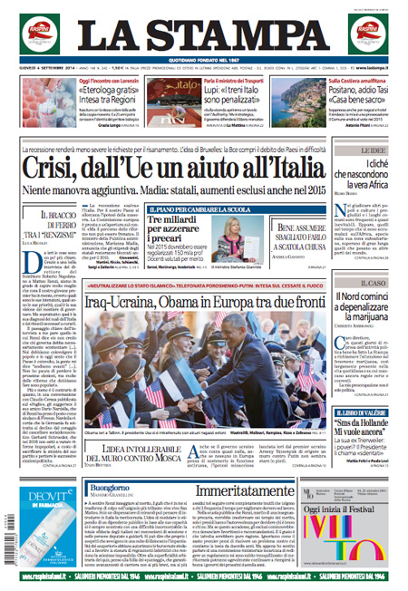 La Stampa: “Crisi, dall’Ue un aiuto all’Italia”.