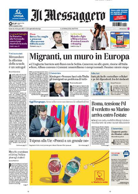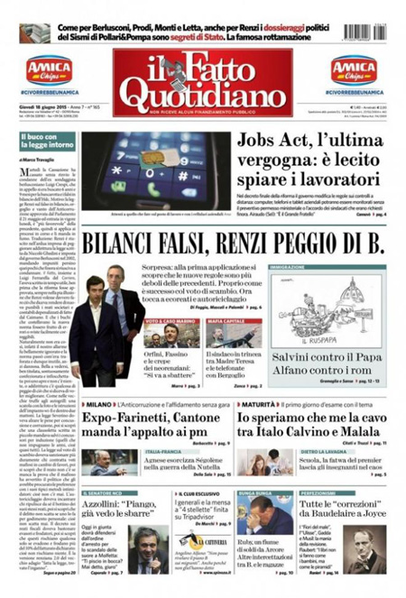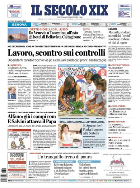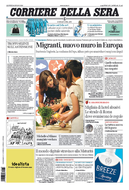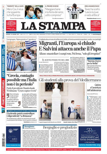 Si parla ancora molto di immigrazione, della situazione di Ventimiglia e delle critiche di Papa Francesco a Matteo Salvini sui respingimenti dei clandestini. Si parla anche della prima prova della Maturità, che è stata svolta ieri (oggi seconda prova), dei problemi di Renzi con la riforma della scuola.