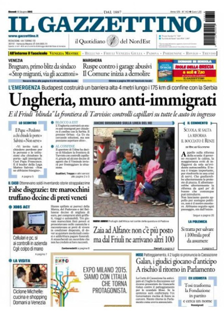 ROMA – L’annuncio del ministro degli Esteri ungherese Peter Szijjarto dell’imminente costruzione di un muro lungo 175 chilometri sul confine con la Slovenia per fermare i migranti irregolari è la notizia più presente sulle prime pagine dei giornali di oggi, giovedì 18 giugno.