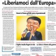 Altri giornali titolano invece sulle celebrazioni per l’anniversario della Liberazione (da posizioni molto diverse), mentre Libero apre con un’intervista al leader del Front National Marine Le Pen, e i quotidiani sportivi celebrano la vittoria dello scudetto da parte della Juventus, matematicamente prima grazie alla vittoria di ieri della Roma sul Napoli.
