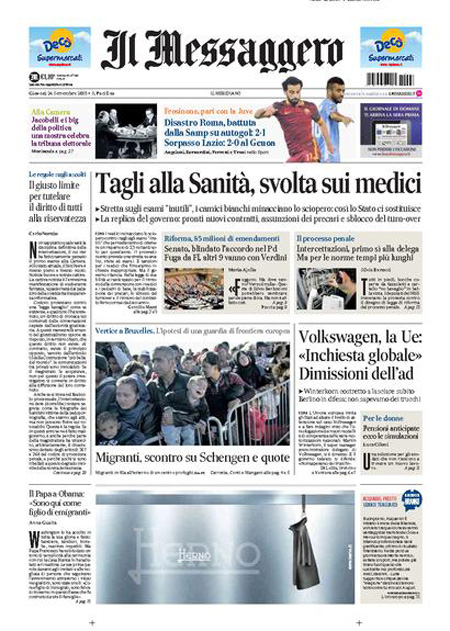 Il Messaggero: “Tagli alla sanità, svolta sui medici”. Il Manifesto: “Si ammali chi può”. Il Giornale: “Il padre di Renzi nei guai”.