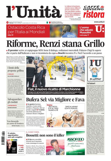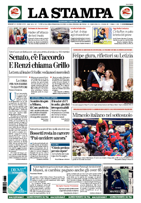 La Stampa: “Senato, c’รจ l’accordo. E Renzi chiama Grillo”.