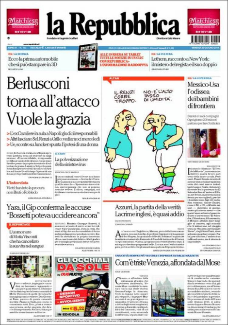 La prima pagina de La Repubblica: “Berlusconi torna all’attacco. Vuole la grazia”.