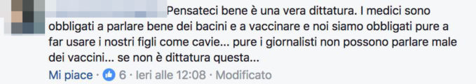Resta lo sconcerto per l’incredibile assurdità che la paura riesce a generare. Nelle intenzioni il gruppo degli untori non lascia spazio a molti dubbi: ce l’hanno con il dl Lorenzin che ha imposto l’obbligo di vaccinazioni per poter iscrivere i propri figli a scuola.