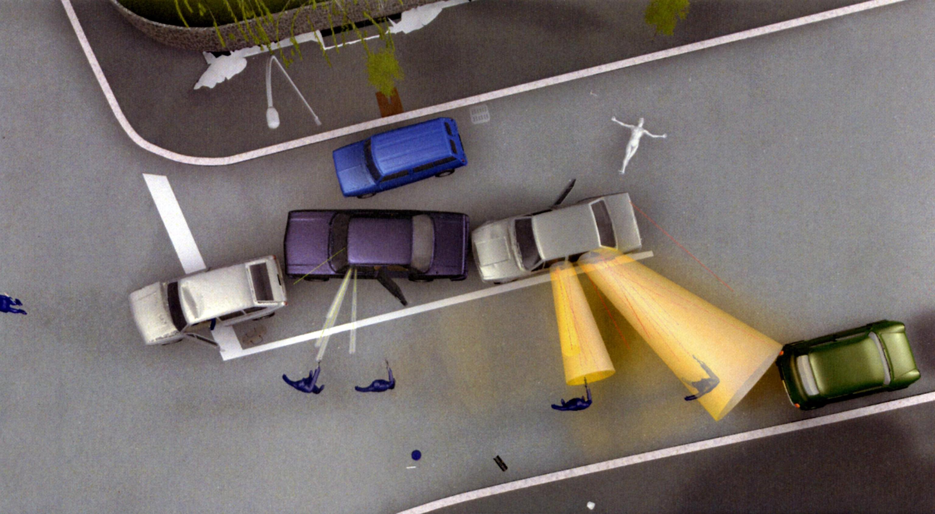 Una immagine della ricostruzione tridimensionale della dinamica della strage di Via Mario Fani, diffusa l’11 giugno 2015. ANSA / US DIPARTIMENTO PUBBLICA SICUREZZA