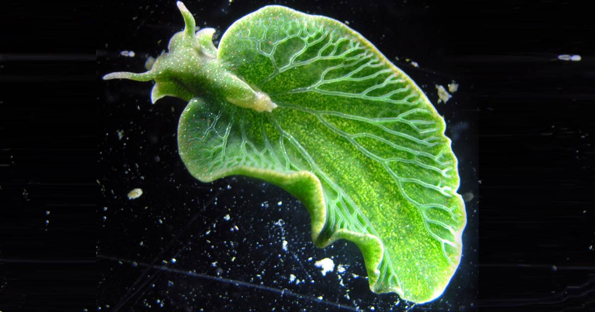 4)Le lumache di mare. Incorporano nelle loro cellule i cloroplasti delle alghe di cui si cibano, sfruttandone la fotosintesi per ottenere nutrimento. Per il loro aspetto, possono essere scambiate per delle foglie che si muovono nell’acqua.