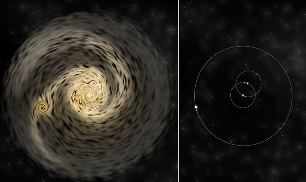 Il sistema osservato da Alma e da Vla si trova in una nube di polveri a circa 750 anni luce dalla Terra e i ricercatori hanno osservato che la stella più centrale si trova rispettivamente a 61 e 183 Unità astronomiche. Le tre stelle sono poi immerse in un disco a spirale di materiale di formazione stellare, che sta creando una struttura spiraleggiante che indica una instabilità del disco. John Tobin, ricercatore della University of Oklahoma e al Leiden Observatory in Olanda e autore dello studio pubblicato su Nature, ha spiegato: