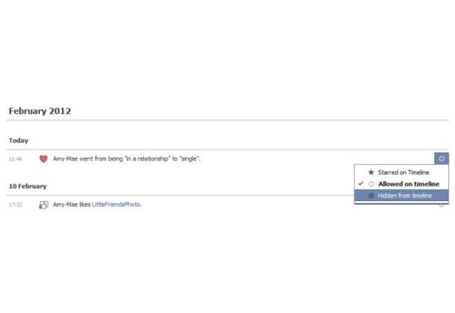 Nel caso che l’informazione sia giĂ stata pubblicata in passato sulla timeline, e volete eliminarla per sempre, ecco come fare. Cliccare su “registro attivitĂ ”, in alto a destra sulla pagina profilo. Qui dovrebbe comparire la modifica alla situazione sentimentale. A questo punto, cliccare sul cerchio a destra e selezionare la voce “nascosto dalla timeline”.