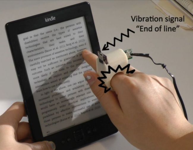 Il prototipo presentato dal Mit è stato creato usando una stampante 3D e sembra un anello piuttosto comodo (anche se esteticamente non il massimo). Nel momento in cui il FingerReader passa sopra la carta — sia un libro, un giornale o un menĂ¹ di ristorante, non c’è alcuna differenza — una voce sintetizzata legge le parole (il volume si puĂ² regolare) rendendo il testo comprensibile. Il team che ha sviluppato questo particolare anello ha creato un software che traccia i movimenti dell’indice, identifica ogni singola parola e processa rapidamente le informazioni per la voce sintetizzata che le leggerĂ . Nel caso il lettore (cieco o meno che sia) che indossa il FingerReader dovesse saltare parole o righe (è inevitabile che capiti), verrĂ attivata una vibrazione che segnalerĂ l’errore fatto.