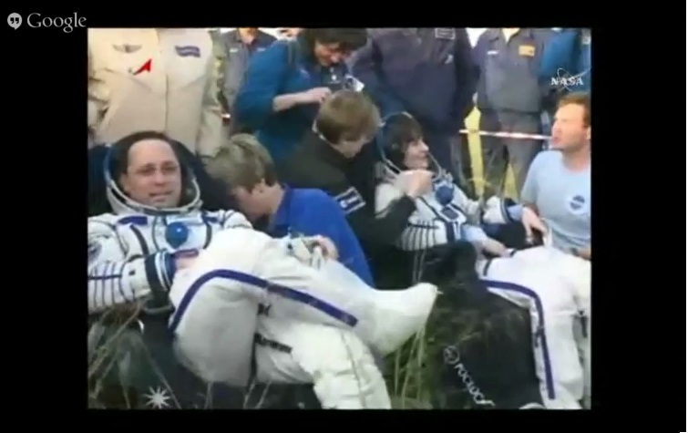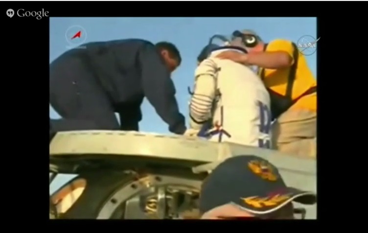 Dopo l’atterraggio i tecnici si sono messi al lavoro per estrarre i tre astronauti dalla capsula e dargli il bentornato sul pianeta Terra.