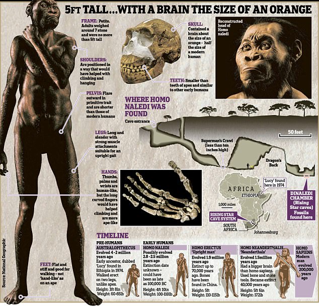 E’ la prima volta che viene dimostrato che in Africa, un’altra specie di ominidi è sopravvissuta insieme ai primi esseri umani. I ricercatori della James Cook University nel Queensland stanno analizzando i fossili dell’Homo naledi, trovati nel 2013 nella grotta Dinaledi che fa parte delle grotte Rising Star in Sudafrica.
