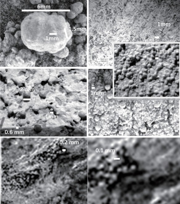 Lo stesso confronto è stato fatto nello studio italiano firmato dai ricercatori Giorgio Bianciardi, Vincenzo Rizzo e Nicola Cantasano. Questa volta ad essere analizzati sono stati i cosiddetti “blueberries” (“mirtilli”) fotografati da Opportunity. Si tratta di piccole sfere che potrebbero essere state originate da forme di vita microscopica. Alcuni di questi “blueberries” sono presenti anche sulla Terra.