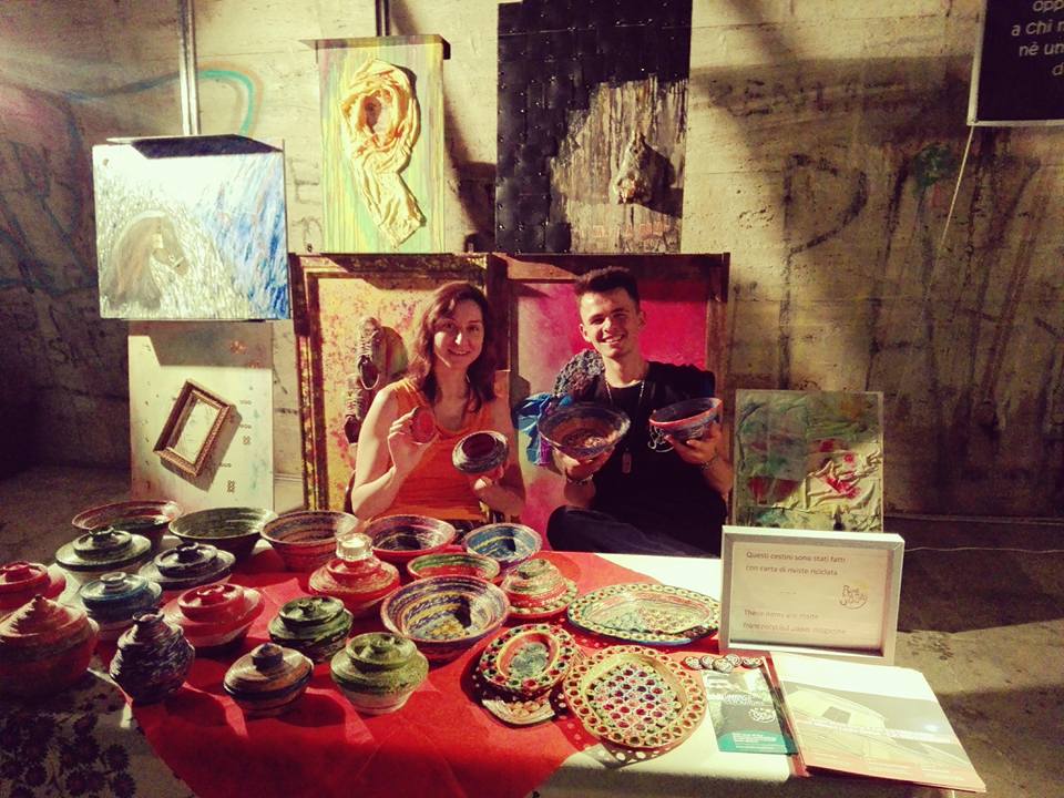 Proprio in questi giorni, Ripa ha allestito uno spazio espositivo all’Isola Tiberina, messo a disposizione dagli organizzatori del TIberfest, gratuitamente. Lo spazio ospita gli oggetti creati dei ragazzi con materiali di riciclo come simbolo della loro rinascita ed è possibile fare un’offerta e portarli a casa come segno di apprezzamento per il loro impegno e come supporto all’intero progetto. In esposizione anche i quadri di Loni, anch’essi creati con materiali di scarto, che non sono in vendita ma destinati ad altre esposizioni.