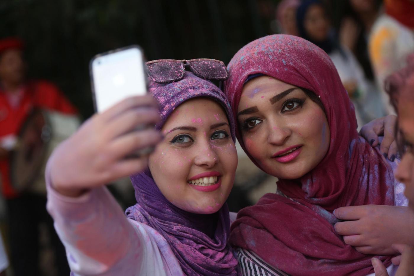 CAIRO, Oct.2, 2015 (Xinhua) — Egyptians pose for selfie in the Festival of Colors in Cairo, Egypt, Oct.1, 2015. (Xinhua/Ahmed Gomaa).
