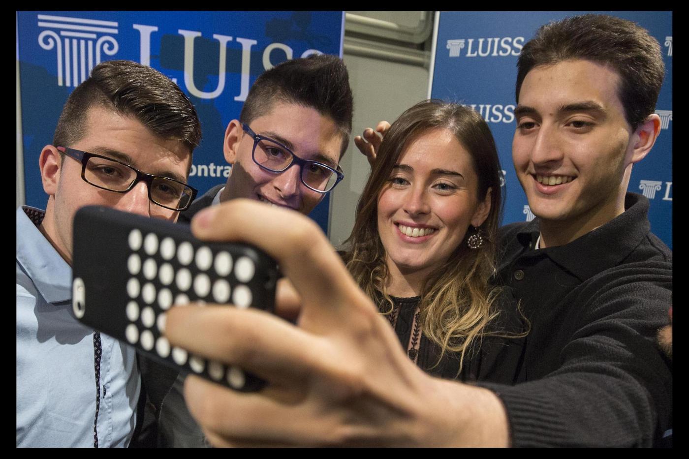 09-04-2015 Roma Università Luiss – Nella foto Maria Elena Boschi e il selfie con gli studenti della Luiss