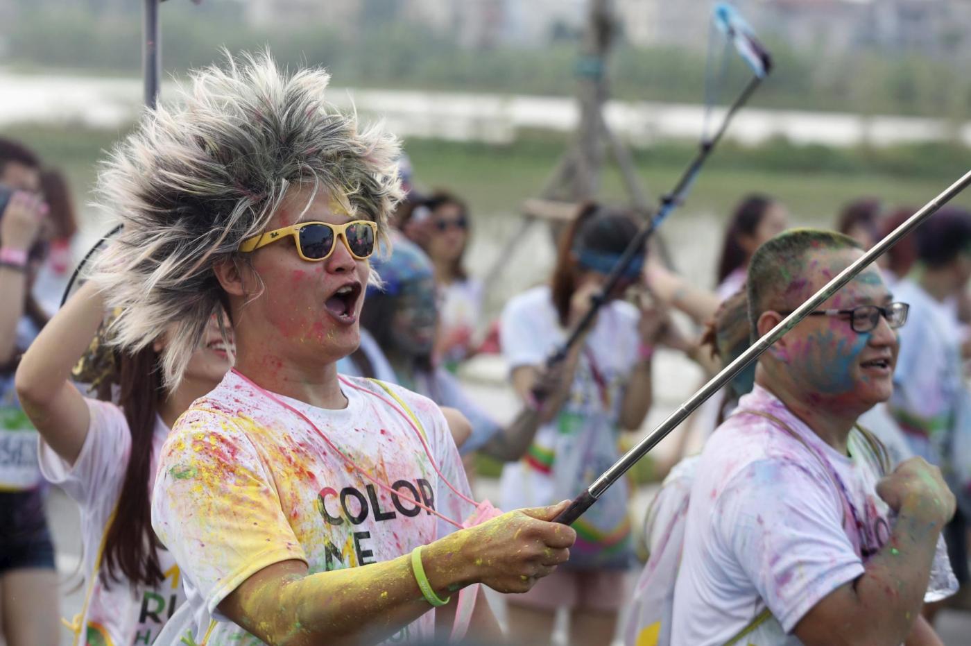A participant covered in colored powder takes a selfie while he competes in The Color Run, a five-kilometre untimed race, in Hanoi, Vietnam September 26, 2015. Approximately 7,000 participants took part in Hanoi’s first Color Run, reported local media. REUTERS/Kham