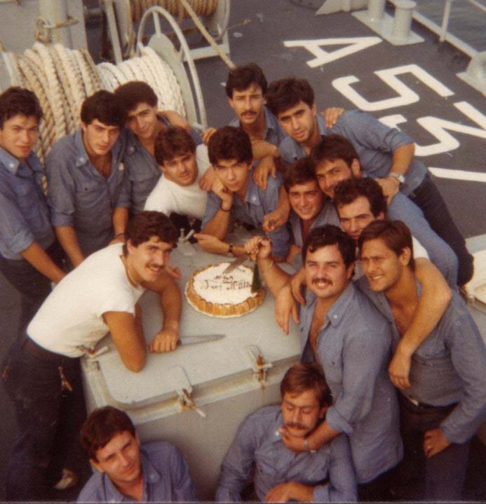 “Anno 79, parte dell ‘equipaggio di Nave Tanaro. Nave cisterna che trsportava acqua potabile alle maggiori isole italiane Giglio, Elba, Sardegna. Io sono il sergente di leva Passarella Maurizio di Scardovari (Porto Tolle) Rovigo. Complimenti per l’iniziativa. Ps io nella foto sono quello più carino saluti”.
