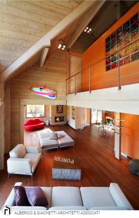 Per quel che riguarda l’arredo di una casa in legno, mantenere una continuità di materiali tra l’interno e l’esterno è la scelta più comune. Ma una stile rustico non significa necessariamente rinunciare alla fantasia. Senza dimenticare che è possibile sfruttare anche il giardino, magari facendoci costruire una bella piscina. Altra idea per rendere unica un’abitazione è quella di optare per delle finestre grandi, in grado di fare entrare molta luce. I colori per le pareti che ben si adattano a una casa in legno sono le tinte calde, magari l’arancio (Foto 6). C’è poi chi sceglie il total white (7). Anche creare contrasti può essere il tocco d’arte. Questo vale soprattutto per tavoli e sedie, ricordando che anche un quadro può fare la differenza. Immancabile il divano morbido nel soggiorno (meglio divano letto per le costruzioni più piccole) e una libreria non troppo grande. Anche il pallet è un’ottima soluzione in questi casi. Grazie alla sua versatilità può infatti essere modellato, decorato e pitturato in moltissimi modi, dando vita ad oggetti di arredamento fashion e glamour.