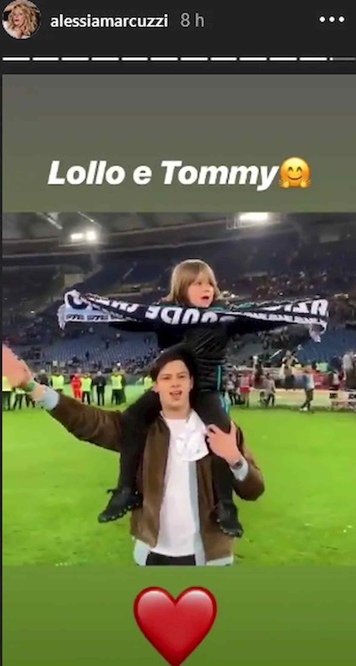La Marcuzzi ha festeggiato il trionfo della Lazio di Simone Inzaghi pubblicando su Instagram una foto con il figlio Tommaso in compagnia di Lollo, figlio della moglie dell’ex calciatore.
