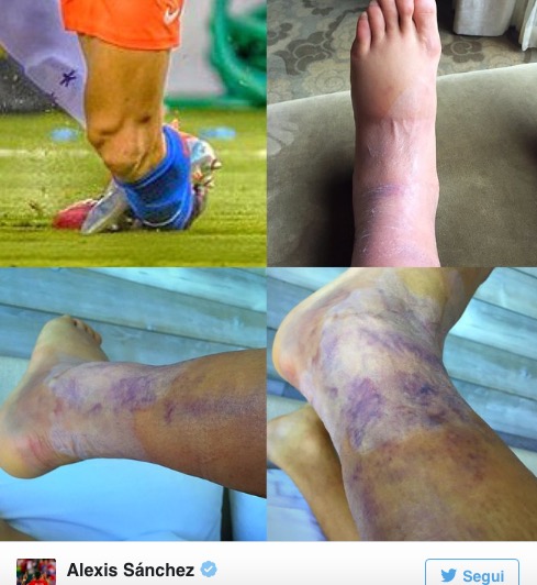 ROMA – Ci sono calciatori che danno tutto per conquistare trofei e giocatori che ci ‘lasciano’ anche una gamba. E’ il caso di Alexis Sanchez che, dopo aver conquistato due Copa America consecutive con la maglia del Cile, ha postato sui social network le foto della sua gamba malridotta.