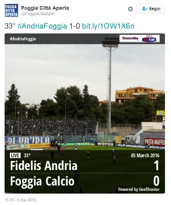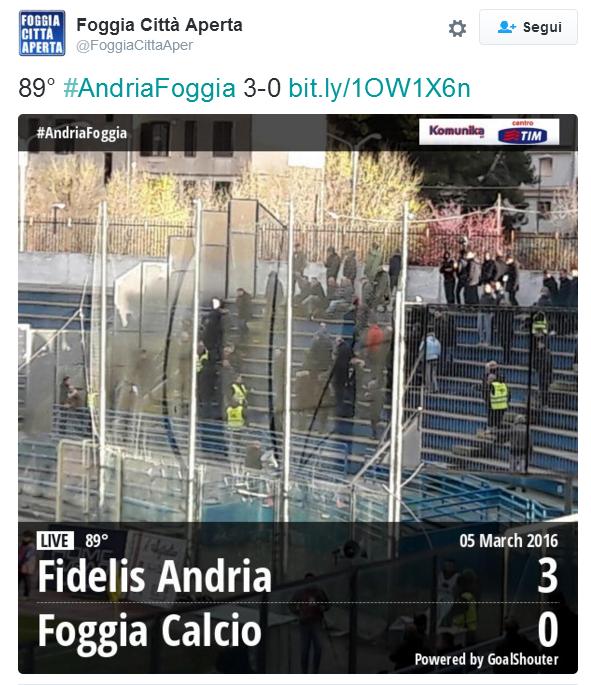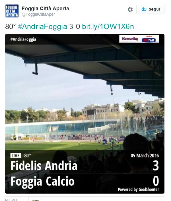 ANDRIA – Fidelis Andria-Foggia 3-0, FOTO e highlights su Blitz con Sportube.tv-Lega Pro Channel: ecco come vedere la partita della 25a giornata del girone C di Lega Pro 2015-16. Stadio Degli Ulivi di Andria. Guarda il calendario completo del girone C della Lega Pro 2015-16 – RISULTATI E CLASSIFICA. Tutta la Lega Pro su Blitz: dirette streaming, classifiche, risultati highlights.