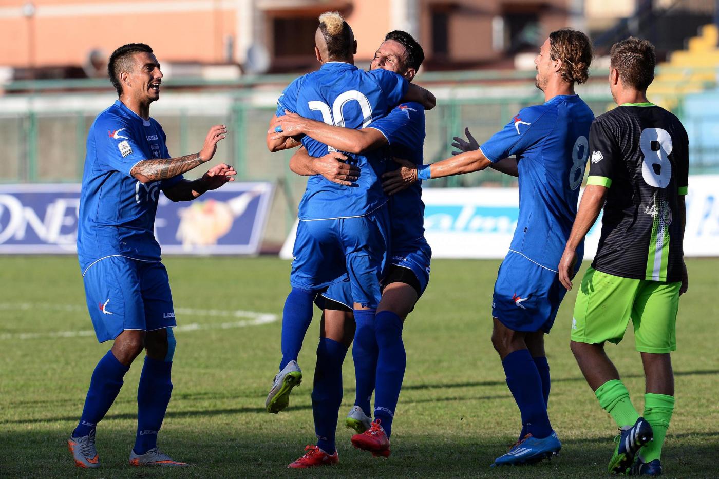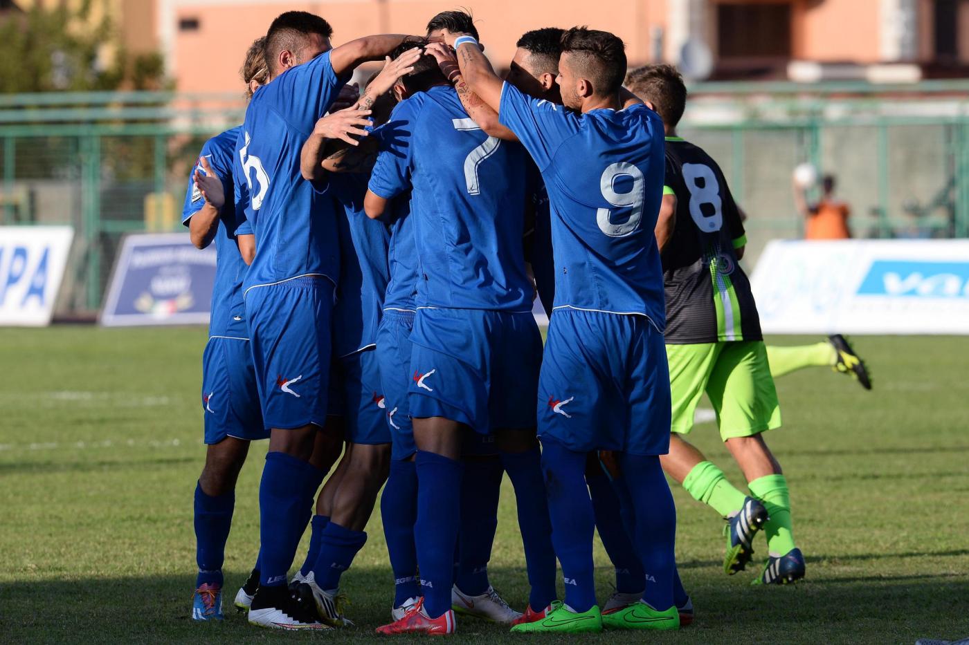 Foto LaPresse – Gerardo Cafaro20/09/2015 Pagani (Italia)Sport CalcioPaganese vs Fidelis AndriaCampionato di Calcio Lega Pro girone C 2015 2016 – Stadio "Marcello Torre"Nella foto : Giocatori della Paganese festeggiano dopo il primo goalPhoto LaPresse – Gerardo Cafaro20 September 2015 Pagani (Italy)Sport SoccerPaganese vs Fidelis AndriaLega Pro group C 2015/2016 – "Marcello Torre" Stadium In the pic: Players of Paganese celebrate the first goal during the Legapro match between Paganese and Fidelis Andria