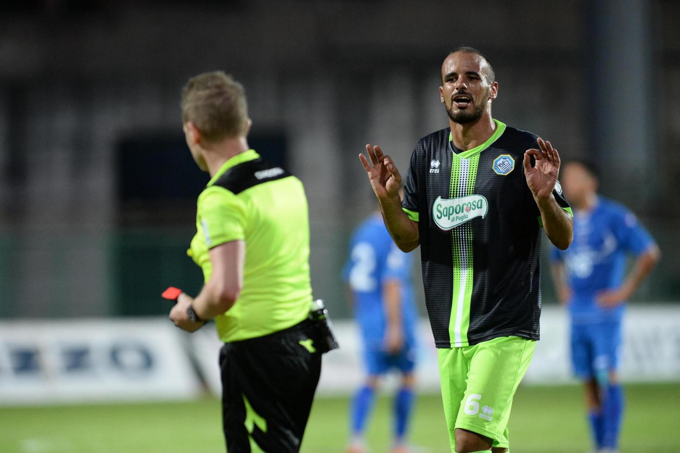 Foto LaPresse – Gerardo Cafaro20/09/2015 Pagani (Italia)Sport CalcioPaganese vs Fidelis AndriaCampionato di Calcio Lega Pro girone C 2015 2016 – Stadio "Marcello Torre"Nella foto : Aya discute con l’arbitro dopo la sua espulsionePhoto LaPresse – Gerardo Cafaro20 September 2015 Pagani (Italy)Sport SoccerPaganese vs Fidelis AndriaLega Pro group C 2015/2016 – "Marcello Torre" Stadium In the pic: Aya discusses with refree for the red card