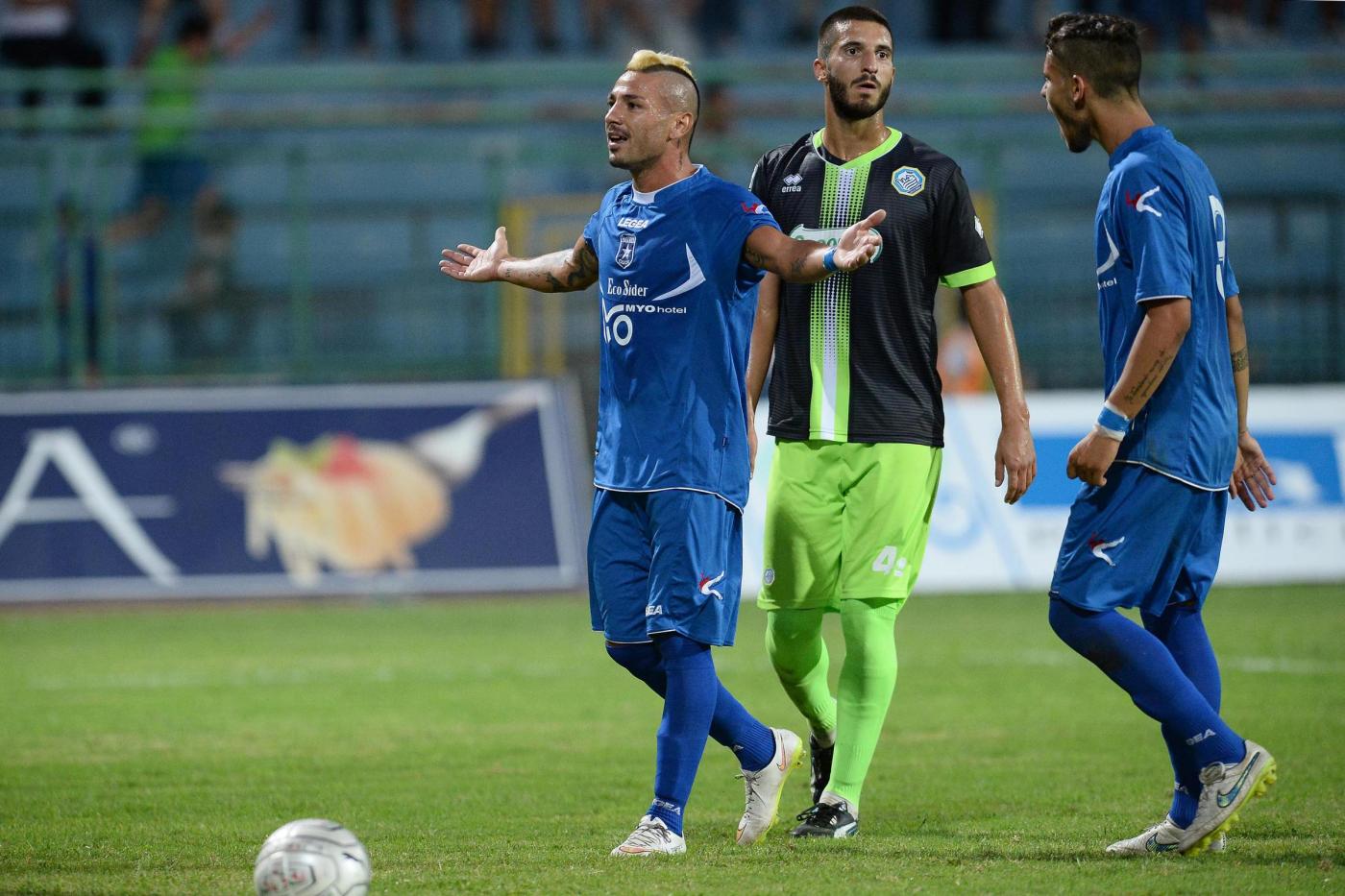 Foto LaPresse – Gerardo Cafaro20/09/2015 Pagani (Italia)Sport CalcioPaganese vs Fidelis AndriaCampionato di Calcio Lega Pro girone C 2015 2016 – Stadio "Marcello Torre"Nella foto : D’Angelo e GrassadoniaPhoto LaPresse – Gerardo Cafaro20 September 2015 Pagani (Italy)Sport SoccerPaganese vs Fidelis AndriaLega Pro group C 2015/2016 – "Marcello Torre" Stadium In the pic: D’angelo discusses with refree during the match vs Paganese.